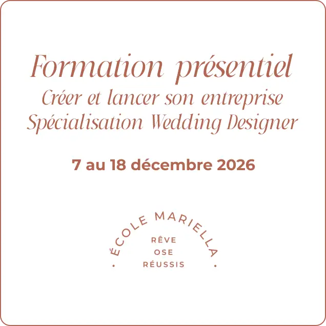 Formation présentiel – Créer et lancer son entreprise – Spécialisation Wedding Designer – Décembre 2026 – Du 18 août au 18 décembre 2026