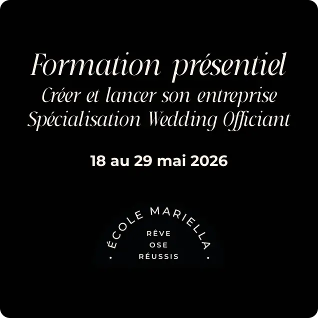 Apprends à créer et lancer ton entreprise tout en développant ta spécialisation Wedding Officiant. Une formation complète qui combine business, communication, posture professionnelle, création d’offres et pratique terrain autour de la cérémonie laïque.
